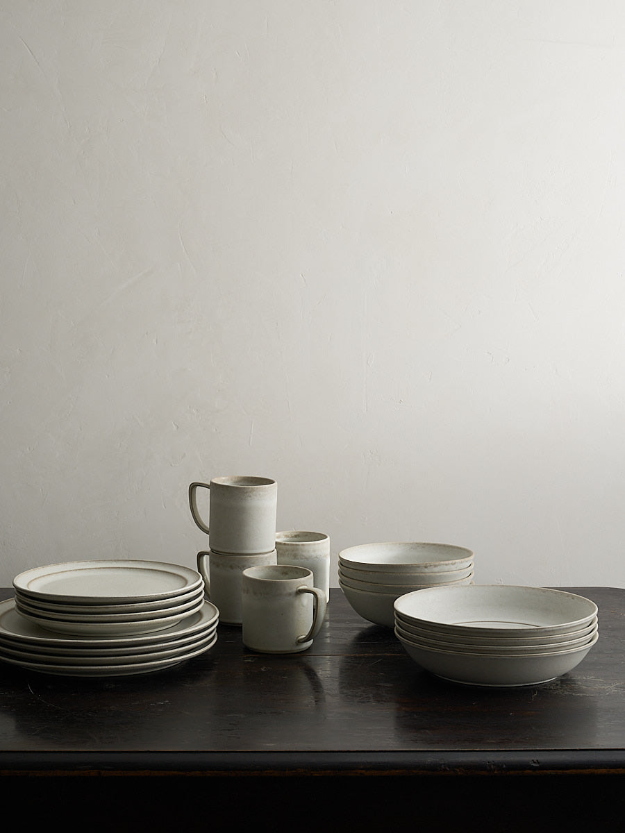 Four place settings of our Pillar dinnerware collection. Click once, add the whole table to cart.
